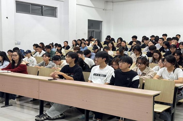为深入落实《南京审计大学金审学院卓越人才培养行动方案》,推动“三全育人”走深走实,2025年10月15日,金融与经济学院院长蔡则祥为2023级专转本新生带来一场主题为“认清自己,奋发图强”的启航教育讲座。讲座在教学楼B中108举行,现场座无虚席,学生满怀期待,凝神聆听。