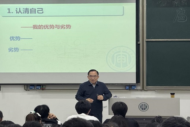 讲座伊始,蔡院长以幽默风趣的语言迅速拉近与同学们的距离。他紧扣学校卓越人才培养的总体思路,指出“认清自己”不仅是个人成长的起点,更是学院实施“科学选才鉴才”,推动个性化培养的重要基础。蔡院长结合丰富的人生阅历和教学案例,引导学生认识自身的优势和不足,规避盲目跟风与认识偏差,为后续明确发展方向、实现分类卓越成长奠定基础。