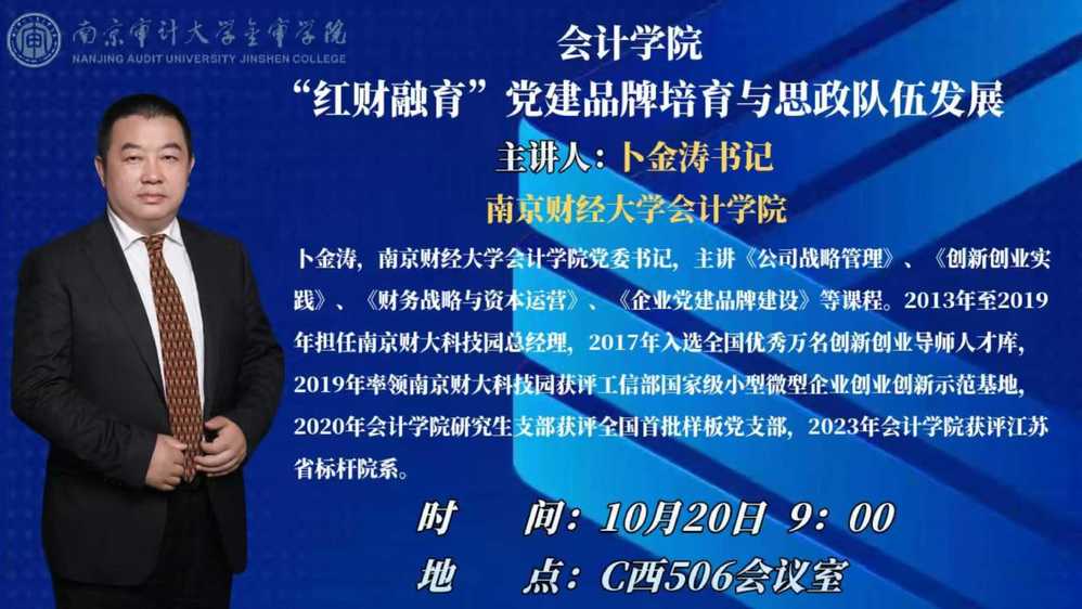 讲座预告|“红财融育”党建品牌培育与思政队伍发展