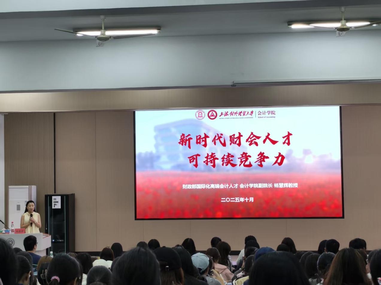 为提高审计专业学子可持续发展竞争力与多维能力,促进学术发展,应对未来职业挑战,审计学院于10月16日下午举办了主题为“新时代财会人才可持续竞争力”的指导讲座。本次讲座特邀上海对外经贸大学会计学院副院长、财政部国际化高端会计人才杨慧辉教授主讲。