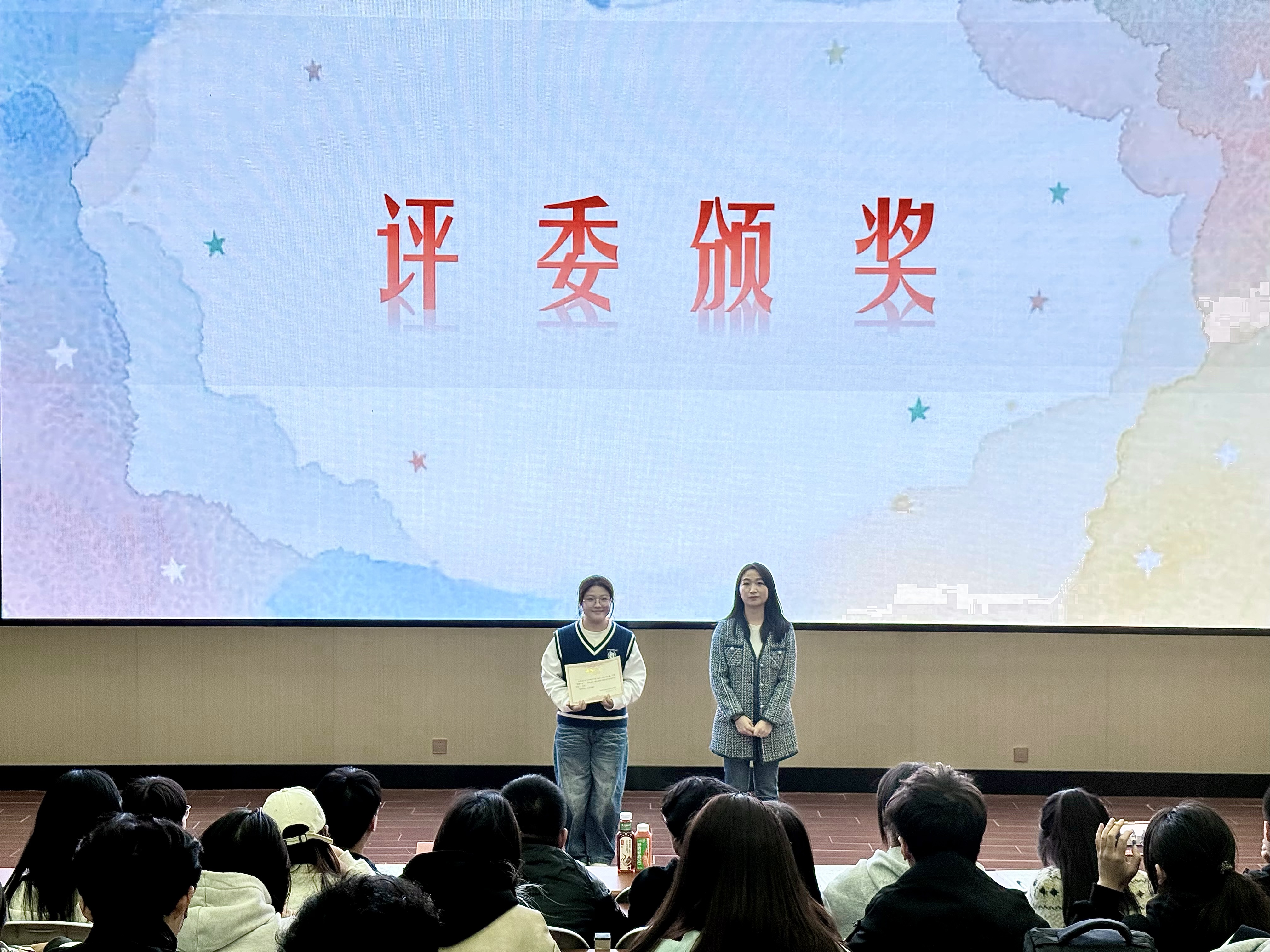 活动最后,薛老师和其他颁奖嘉宾在观众的热烈掌声中上台为获奖选手们颁奖并合影留念。