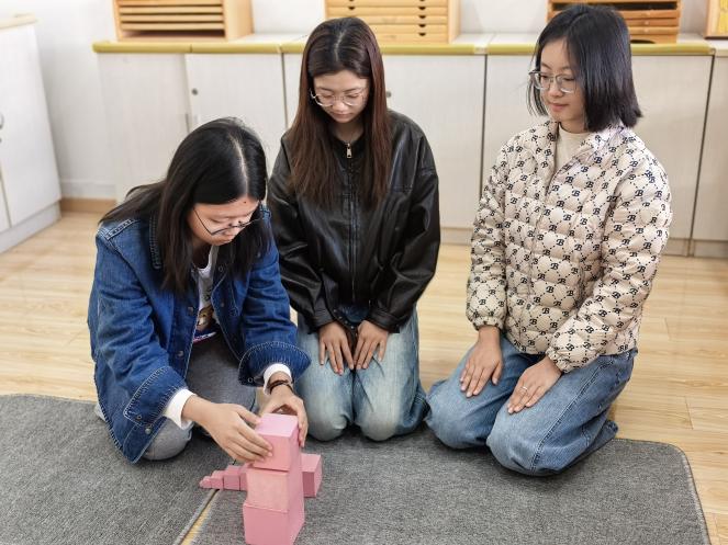 “这次演示让我真正明白了‘我听到了,我忘记了;我看见了,我记住了;我操作了,我理解了’这句话的含义。”一位同学分享道,“当我们蹲下来,与‘孩子’平视,带领他们操作时,才真切感受到蒙台梭利博士所说的‘尊重儿童’的重量。”