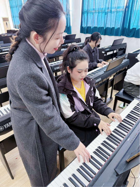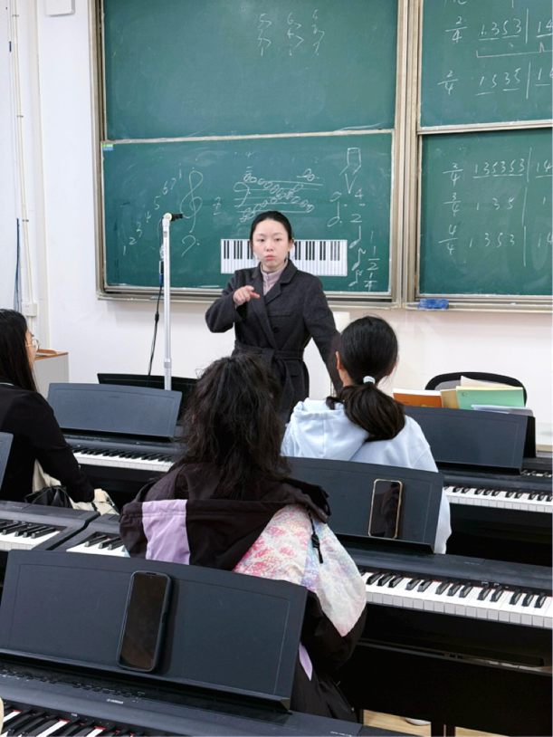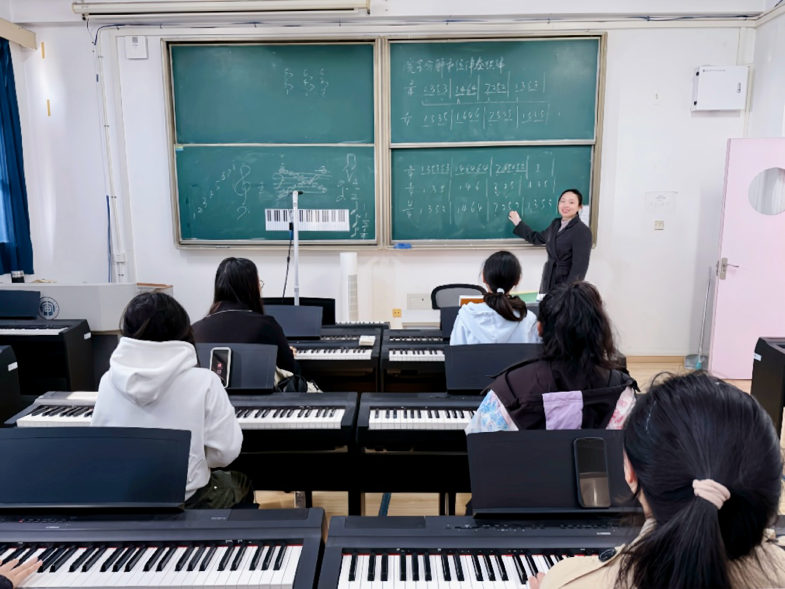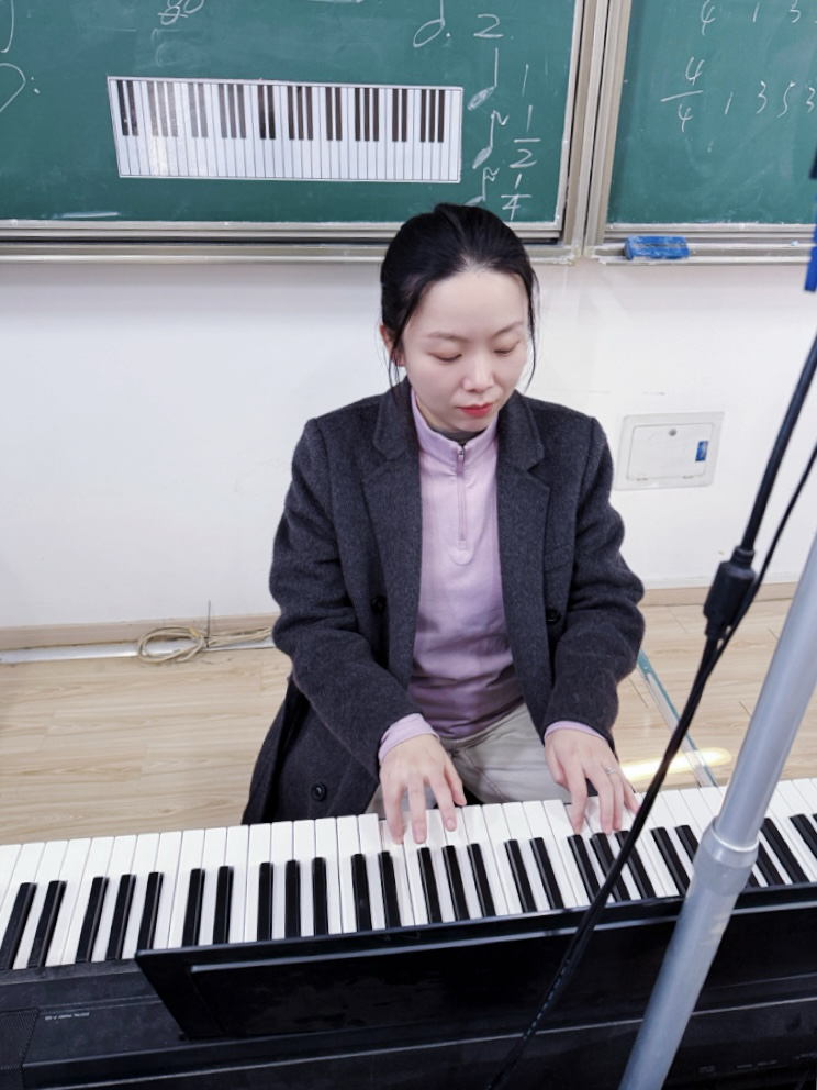 2025年10月23日下午一、二节课,教师教育学院开设了一堂融合音乐技艺与思政教育的钢琴即兴伴奏公开课。蒋鹤如老师以琴键为载体,在传授即兴伴奏技巧的同时,将家国情怀融入旋律解析,让学生在掌握音乐技能的过程中,感受经典作品的精神力量,实现“技艺传授”与“价值引领”的同频共振。