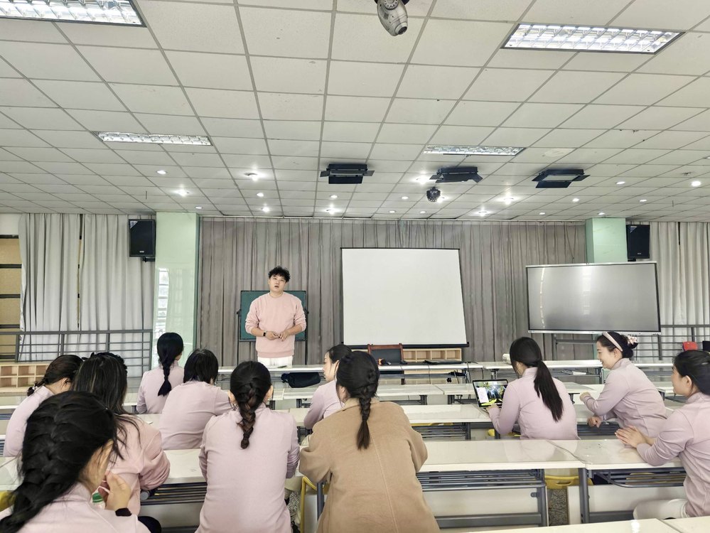 关晨雨老师以维族舞蹈教学为主线,巧妙结合思政导入,引导学生增强文化自信。他通过维族服饰、铃鼓等道具营造沉浸式体验,使学生在学习“托帽式”“旋转步”等典型动作的同时,深刻感受民族文化的魅力。