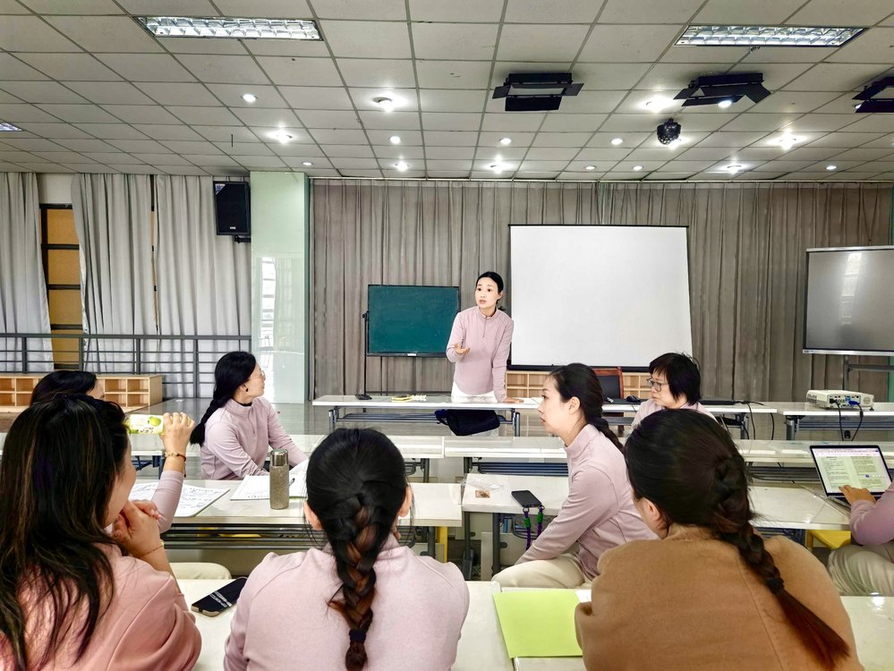 副院长鲍文娟的发言将研讨推向更深层次。她重点阐述了“以学生为中心”的教学理念,提出应大力推行分层教学与课前任务驱动,让学生“课前学有所知、学有所惑,课堂上惑有所解、学有所用”。她指出,教师的角色应从传统的讲授者转变为学生学习的引导者,基于学生的“最近发展区”动态生成教学内容,真正唤醒学生的学习热情与自主性,为终身学习奠基。