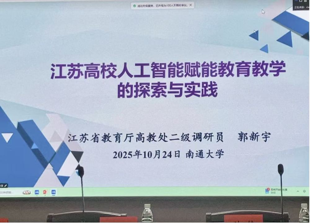 为积极响应国家教育数字化战略行动,推动师范类专业课程教学改革与创新,2025年10月24日至26日,南京审计大学金审学院教师教育学院选派青年教师代表,赴南通大学参加了由江苏省教育厅主办的“2025年教育数字化转型背景下高校课程教学的创新改革(师范类)”专题培训。