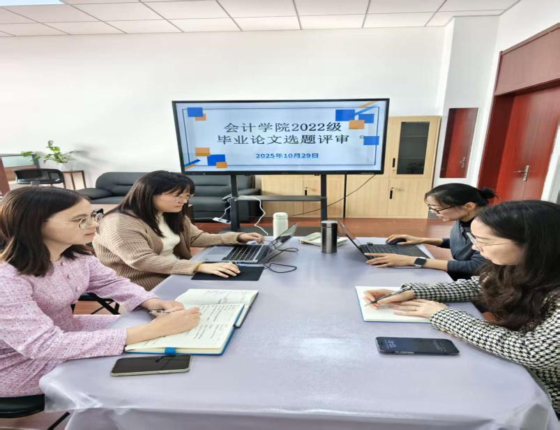 为切实提升我院2026届本科毕业论文质量,筑牢人才培养质量防线,10月29日下午,会计学院于C西507召开了毕业论文选题评审会。会计学院副院长胡爱平、周莎,会计学系副主任王娜,财务管理系副主任陶思奇及学院部分教师参加了本次会议。