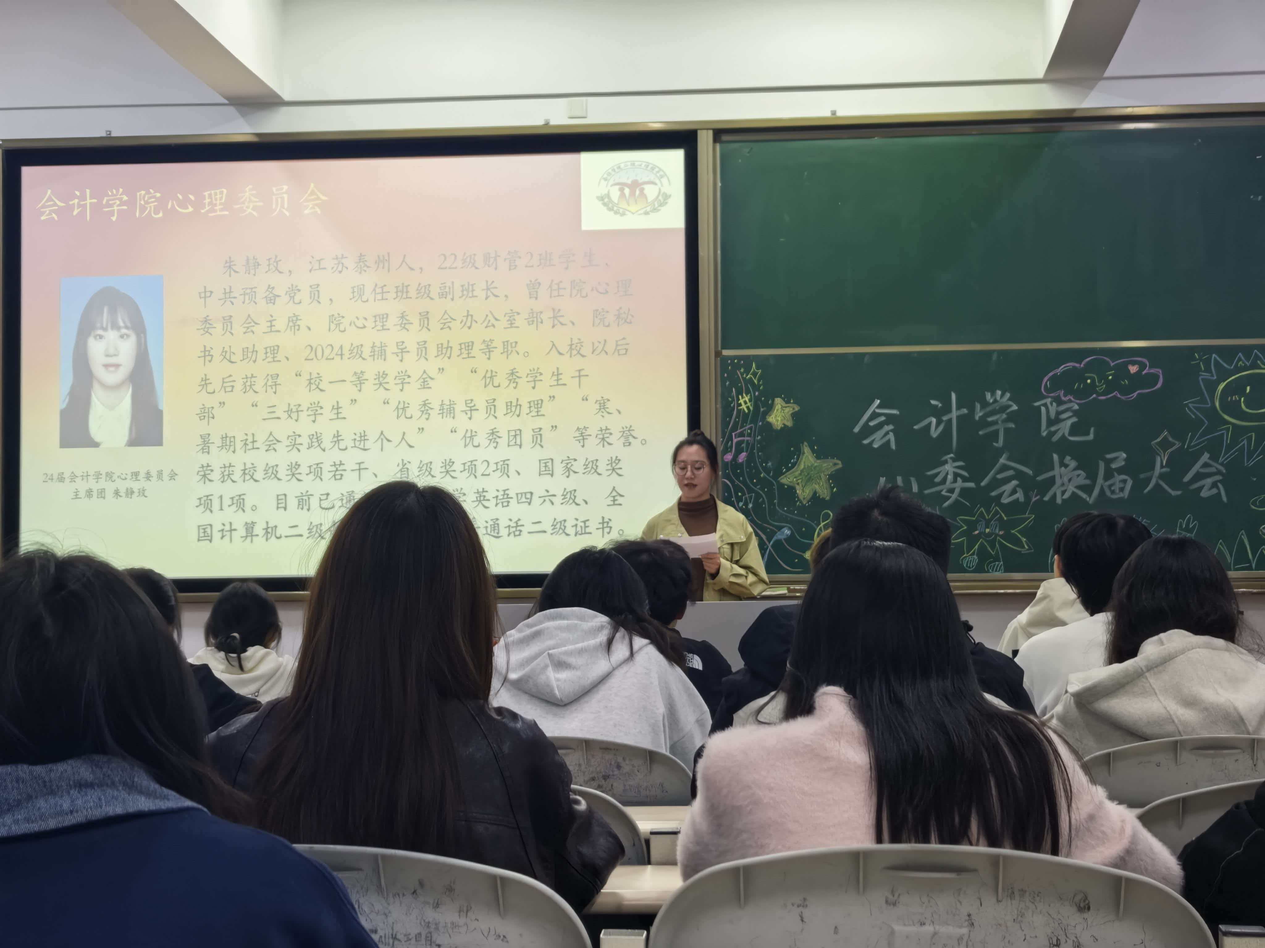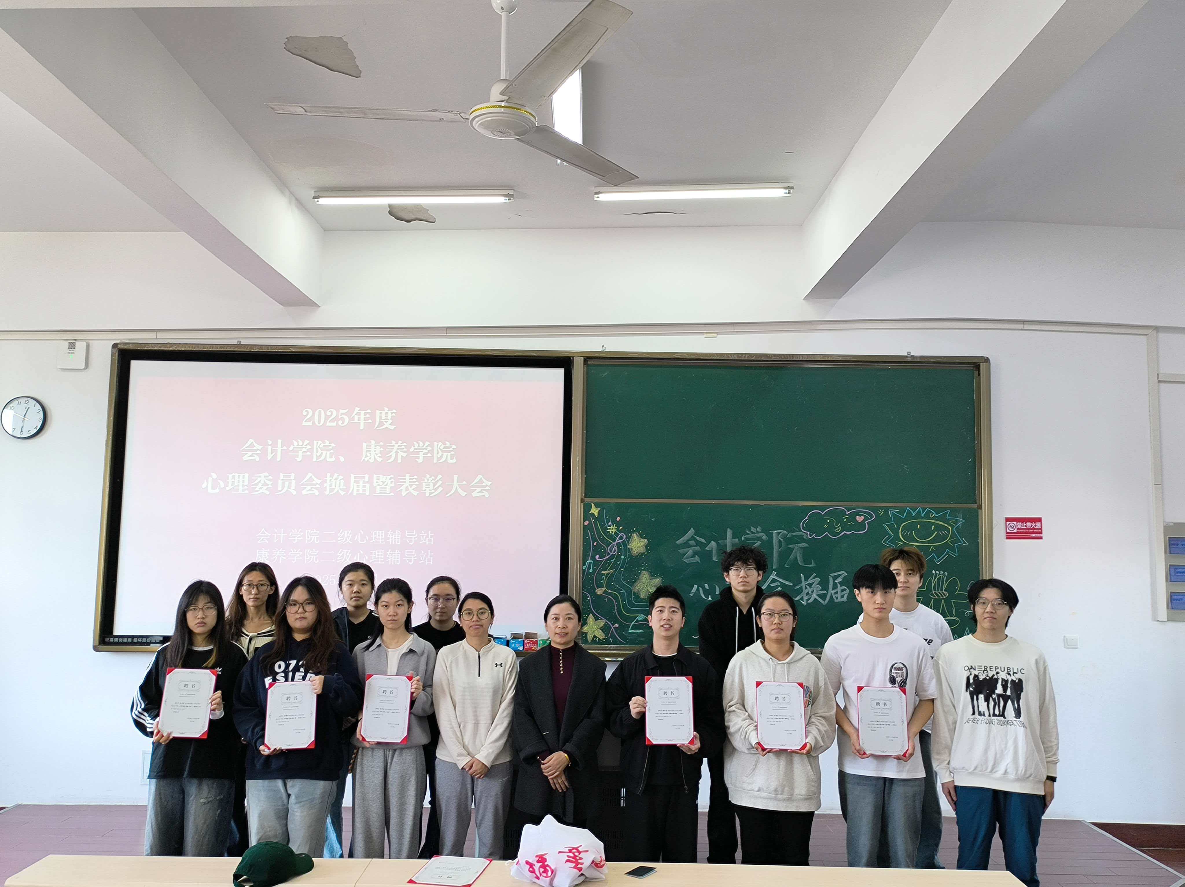 为进一步健全校园心理健康服务体系,优化心理委员会组织架构,保障心理健康工作的连续性与创新性,会计学院与康养学院心理委员会于2025年11月5日举办换届暨表彰大会。会计学院党总支书记于璐、二级心理辅导站指导老师吴佳倩出席本次大会,心理委员会全体成员参会。