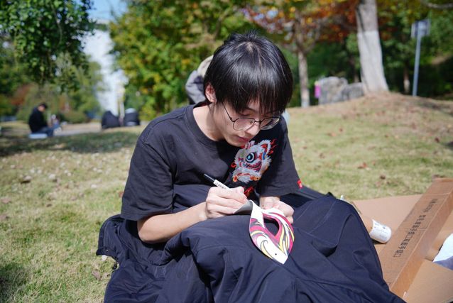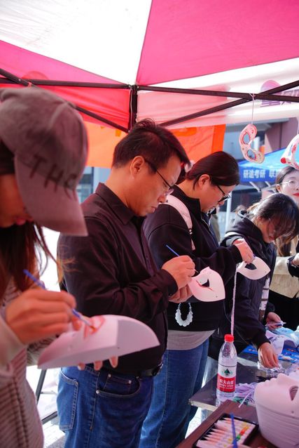 画笔流转,色彩交织。在“面具绘心”区域,师生们或凝神构思,或挥笔创作,将内心深处难以言表的情绪,无论是喜悦、憧憬还是释然,转化为面具上独具匠心的图案与浓淡相宜的色彩。在这场专注而自由的表达中,大家逐渐卸下疲惫,释放压力,实现了心灵与艺术的深度对话。