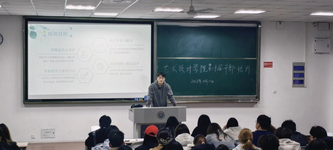 为进一步加强学院干部队伍建设,明确学生干部的工作职能与责任,提升干部队伍的凝聚力和执行力,11月13日,艺术设计学院第十期学生干部培训班第七场讲座在C南201教室顺利召开。本次讲座由学院分团委书记邢威威老师主讲,团学各部门干部及25级全体班干部参加本次培训。
