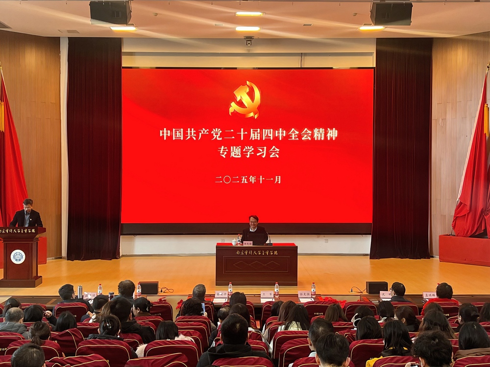 王军在总结讲话中指出,党的二十届四中全会是向第二个百年奋斗目标进军新征程上召开的重要会议,学习贯彻全会精神是当前及今后一个时期全党全国的重大政治任务,对教育系统而言更具特殊意义。“十五五”时期既是建设教育强国的关键阶段,也是学校事业发展的重要窗口期,如何深刻领会全会精神内涵、对标《教育强国建设规划纲要》、衔接学校《高质量发展三年行动计划》并科学编制《十五五发展规划》,是全体金审人需深入思考的重要课题。此次专家报告会正是为解答这些问题、凝聚发展共识搭建的重要学习平台。希望全体金审人在深刻领会全会精神内涵的基础上,准确把握“十五五”时期的时代特征,结合学校发展实际,助力推进人才培养、学科建设等工作,推动学校高质量发展。