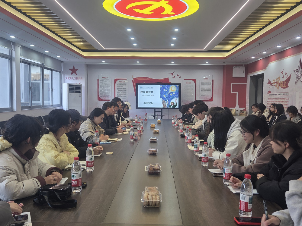 为深入了解艺术学子成长需求,畅通师生沟通渠道,凝聚学院发展合力,本期“校长面对面” 学生座谈会于2025年11月18日在学院会议室举行。纪委书记沈明教授、学生处副处长刘颖老师、艺术学院党总支书记庄怀军老师、分团委书记邢威威老师及24级数媒2班代表出席会议。