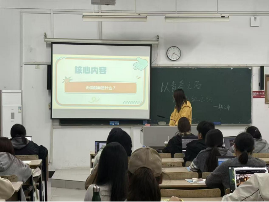 在班会上,宣传委员们用精心制作的PPT、触动人心的纪实影片,向同学们介绍无偿献血的意义。从急诊室里亟待输血的病患,到产房里守护母婴的关键时刻,从重症病房的生命续航,到突发灾害中的紧急驰援,一个个真实场景让同学们深切体悟到,血液是生命的纽带,而无偿献血便是青春最深情的告白。结合专业所学,宣传委员们用专业视角解读血液生理奥秘,从造血功能的动态平衡到献血后的科学恢复,用严谨知识破除“献血伤身”的认知迷雾,让每一位同学都明白,适量献血既是对他人生命的馈赠,也是对自身健康的积极助力。