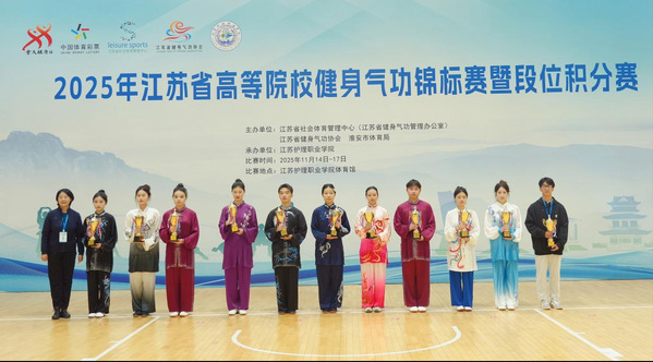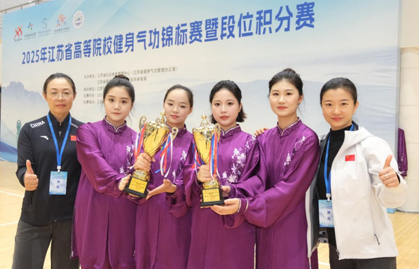 11月14日至17日,2025年江苏省高等院校健身气功锦标赛暨段位积分赛在淮安拉开帷幕。在基础教学部史琳、王倩的带领下,我校健身气功代表队4名教育学院学生刘安棋、刘俪、姚梓诺诺、朱晓悦以扎实的功底与默契的配合,在众多高校队伍中脱颖而出,一举夺得集体、个人2项一等奖,3项个人二等奖,4项个人三等奖,为我校赢得了荣誉!