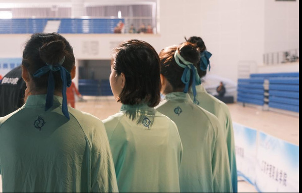 从赛前备赛的专注磨合,到赛场上形神合一的动作演绎,队员们以行云流水的姿态诠释了传统功法“内外兼修”的精髓。统一的服饰、整齐的阵型,既展现了青春团队的凝聚力,也让中华传统文化的韵味在赛场中自然流淌。