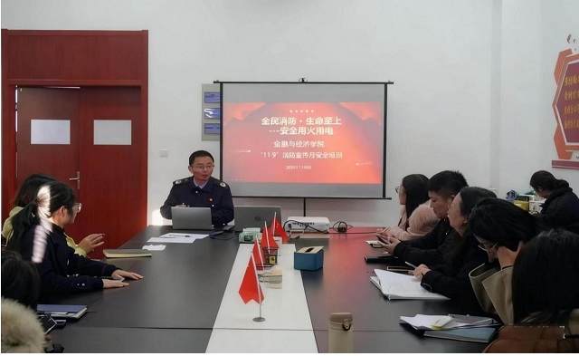 为进一步提升全体教职工的安全防范意识和应急处置能力,筑牢校园安全防线,保障学院教学秩序平稳有序,金融与经济学院在C西403会议室组织开展教职工消防安全专题培训,特邀南京安民消防王虎教官担任本次培训会主讲人。