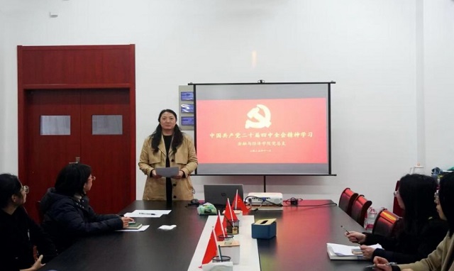 为深入学习宣传贯彻党的二十届四中全会精神,切实把全院教师的思想和行动统一到全会部署上来,根据学校党委通知精神,2025年11月19日,金融与经济学院党总支组织全体教师开展二十届四中全会精神专题学习会。会议由学院党总支副书记王立峰主持并领学。