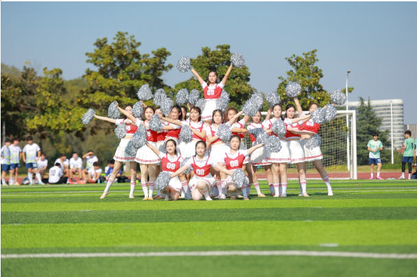 “青春竞跃”的内核,是一曲激昂的“淬炼之声”,淬炼身体、精神与思维。这声音在绿茵场上激荡——13场足球比赛中,运动员们以昂扬的姿态奔跑、拼抢,在赛场内外研判谋略;这声音也在美育赛场回响——啦啦操队员以汗水雕琢动作精度,文创设计者以专注打磨创意细节,摄影与视频团队以匠心定格精彩瞬间。全体参与者以“并肩向上、不断突破”的执着,共同诠释“清醒源于自省,卓越成于坚持”的精神,铸就成长历程中最坚实的基石。
