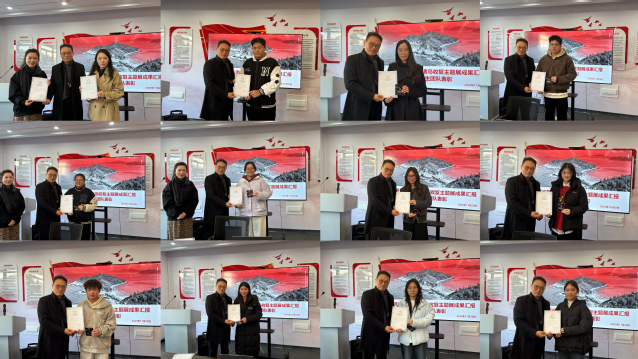 随后,王鸣义院长为在主题展策划、创作、执行中表现突出的教学及学生团队颁发荣誉证书与奖品。他赞许团队展现的严谨态度、创新思维与协作精神,鼓励大家珍惜荣誉、砥砺前行,在未来创作中续写爱国篇章。