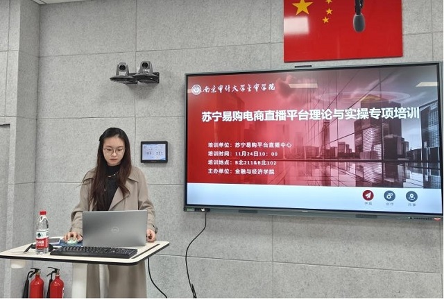 深化校企合作,推动产教融合走深走实,11月24日上午,金融与经济学院国际经济与贸易专业联合苏宁易购平台直播中心,共同开展“苏宁易购电商直播平台理论与实操专项培训”活动。金融与经济学院副院长谢海燕全程参与指导,为培训活动的顺利推进与成果转化提供坚实保障。本次培训特邀苏宁易购平台直播中心负责人蔡金宝、直播频道负责人刘琦及苏宁直播平台运营冯婷,为有志于参加电商直播项目的学生带来一场理论与实操深度融合的知识盛宴。