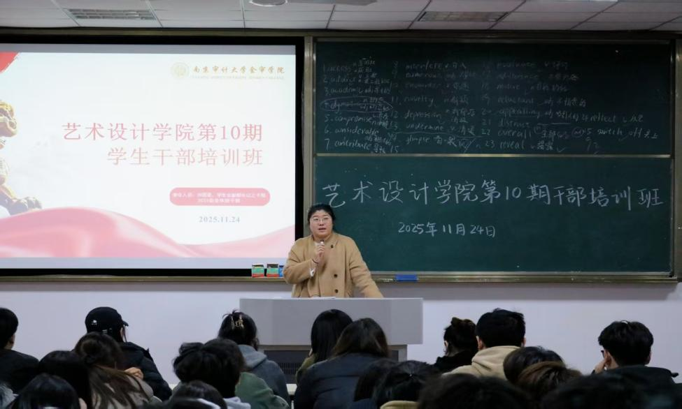 为进一步提升学生干部的责任意识与履职能力,筑牢班级管理根基,充分发挥学生骨干在学风建设、日常管理中的桥梁纽带作用,艺术设计学院于2025年11月24日,开展第十届学生干部培训。艺术设计学院团学干部、2025级各班委齐聚现场,资深辅导员于青秀老师以“精准定位角色,赋能高效履职”为主题,开展了针对性极强的专题授课。