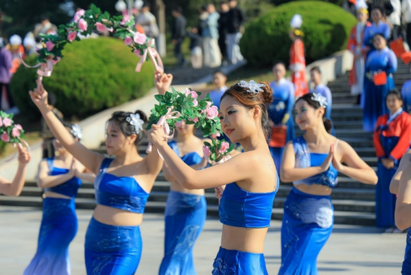 下午13:30,展演在期待中准时开始。广场上,舞蹈团的同学们倾情投入,以极具张力的表演,带领观众进行了一场跨越山河的文化之旅。豪迈奔放的草原舞步、灵动柔美的江南韵律、神秘圣洁的雪域情怀、热情似火的边陲风情……一个个精心打磨的节目,如同一块块多彩的拼图,共同绘就了中华民族多元一体的动人画卷。同学们用青春的舞姿,生动讲述了“我们从历史深处携手走来”的共同体故事,赢得了现场阵阵掌声。