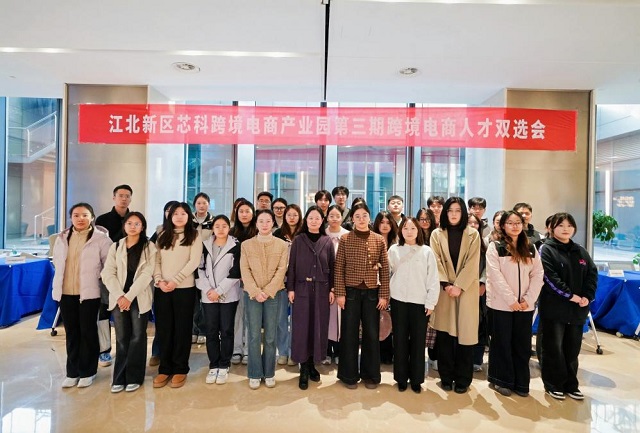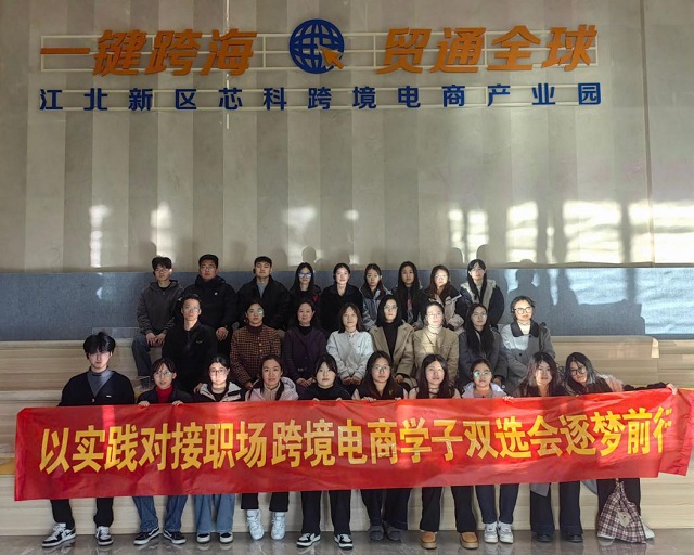 2025年11月26日下午,金融与经济学院谢海燕副院长、国贸系主任王磊携手专业教师团队带领我院国际经济与贸易专业2025届毕业生前往南京江北新区芯科跨境电商产业园,参加“第三届江北新区跨境电商人才专场双选会”。
