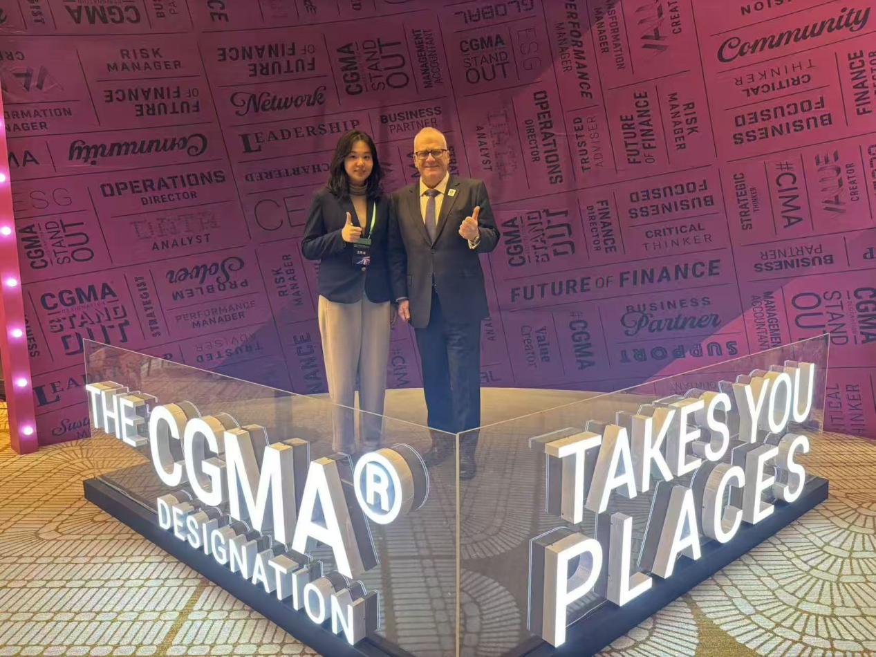 有幸在CGMA全球管理会计2025年度中国大奖暨CFO高峰论坛担任志愿者,并与夏鼎先生合影。作为CIMA资深会员、CGMA全球特许管理会计师及英国皇家特许管理会计师公会首席执行官,他的专业风范令人敬仰。这次经历让我近距离感受到管理会计领域的智慧与活力,备受鼓舞,也坚定了我未来职业发展的方向。