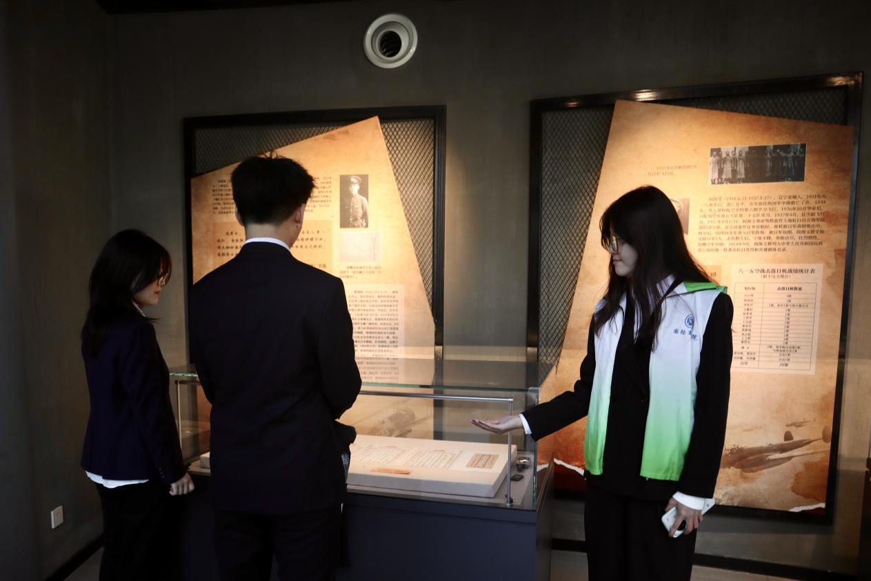 为赓续红色血脉、厚植家国情怀,引导青年学子铭记革命历史、传承英烈精神,11月30日上午,学生代表在志工部志愿者的带领下,走进南京抗日航空烈士纪念馆,开展“铭记历史,珍爱和平,吾辈自强”国家公祭日主题学习活动。此次活动通过展馆沉浸式学习与烈士墓碑前追思致敬相结合的形式,让同学们在实地探访中感悟初心使命,在精神传承中凝聚奋进力量。