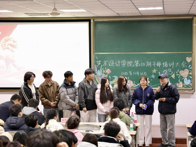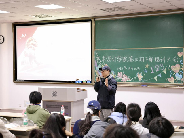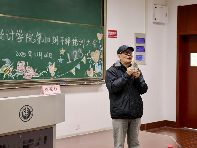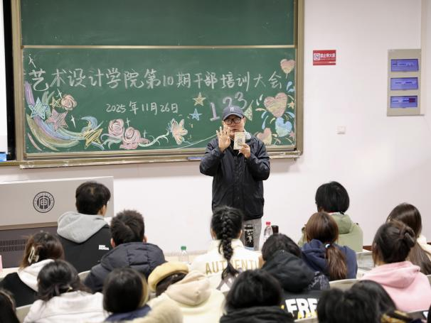 2025年11月26日下午,南京审计大学金审学院艺术设计学院第十期学生干部培训会现场掌声雷动。“公益达人”陈景和教授以毛泽东同志“你们是早晨八九点钟的太阳,希望寄托在你们身上”的经典寄语开篇,为百余名学生干部代表带来一堂兼具信仰力量与艺术温度的成长课。学院党总支书记庄怀军、分团委书记邢威威莅临现场,与学子共悟青春真谛。