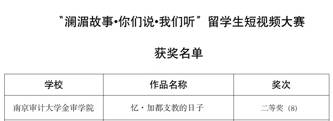 2025年12月7日,“澜湄故事•你们说•我们听”留学生短视频大赛落下帷幕。南京审计大学金审学院国际教育学院学子杨丰宁的作品《忆·加都支教的日子》,历经层层选拔与专家严苛评审,最终脱颖而出,斩获大赛二等奖,在全省高校青年群体中崭露头角。