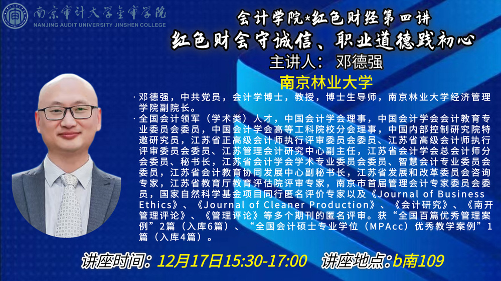 讲座预告|红色财经第四讲:红色财会守诚信,职业道德践初心