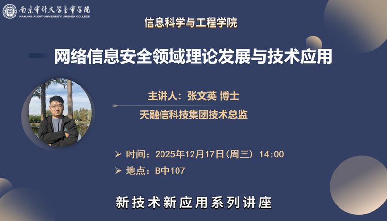 讲座预告 | 网络信息安全领域理论发展与技术应用
