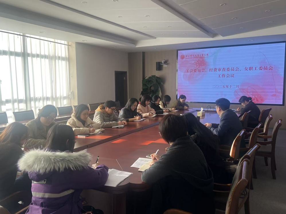 12月16日,我校在行政楼302会议室召开工会委员会、经费审查委员会及女职工委员会(以下简称“三委”)工作会议。党委委员、校长助理、工会主席成庭羽出席并主持会议,校工会“三委”全体委员参加会议。会议旨在深入学习贯彻党的二十届四中全会精神,全面回顾总结2025年工会工作成效,通报学校“十五五”发展规划编制情况,并就下一阶段重点工作进行部署。