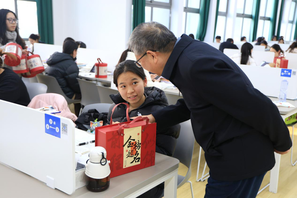 活动中,校领导将学生处精心准备的“考研祝福礼包”逐一送到考生手中,每一份祝福都承载着学校对学生的美好期许,预祝他们在2026年全国硕士研究生考试中蟾宫折桂,一战成“硕”,金榜题名。