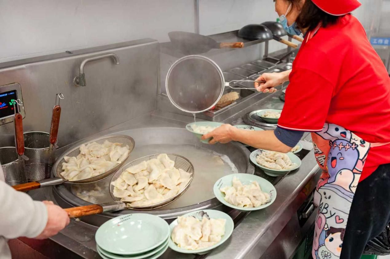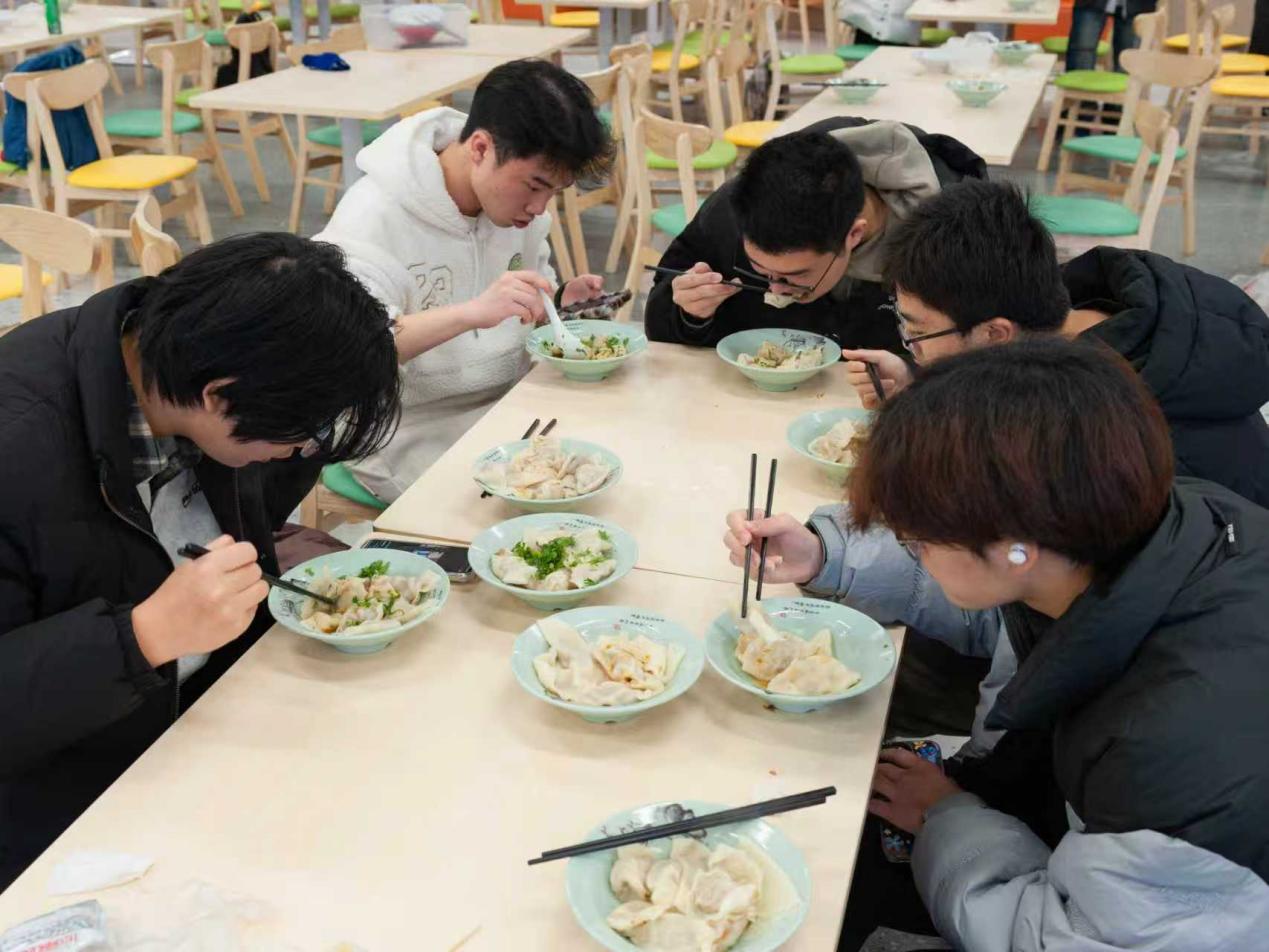 随着热气腾腾的饺子出锅,师生围坐共享劳动成果,边品尝边交流包饺心得与冬日故事,欢声笑语回荡食堂。活动特别增设“温暖传递”公益环节,师生们将部分饺子打包赠予食堂工作人员、安保人员、宿管员等校园一线工作者,以“舌尖上的心意”致敬平凡岗位上的坚守与付出,让冬至的温暖从餐桌延伸至校园每个角落。