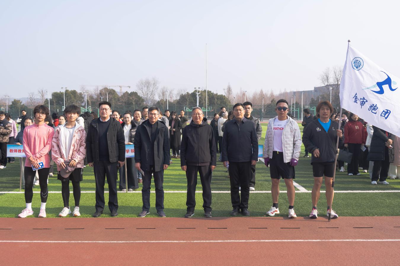 为深入学习贯彻党的二十大及二十届四中全会精神,全面落实习近平总书记关于工人阶级和工会工作的重要论述,同时引导全校师生形成良好的体育锻炼习惯,增强集体荣誉感与凝聚力,12月30日下午,南京审计大学金审学院工会举办了以“逐梦新征程健康迎新年”为主题的迎新年环校园师生健身走活动。校长、党委副书记俞安平,党委书记王军,纪委书记沈明以及校长助理成庭羽、孟琪璐参加活动,三百余名教职工齐聚操场,共享健身运动带来的欢乐,共同迎接新年的到来。