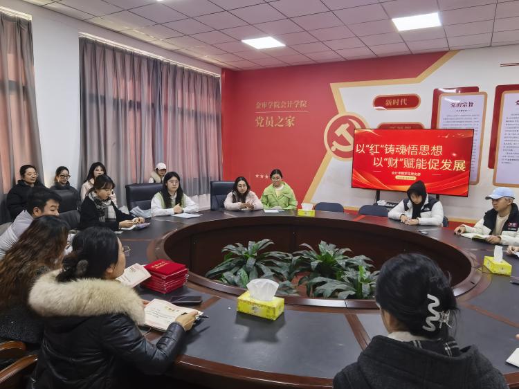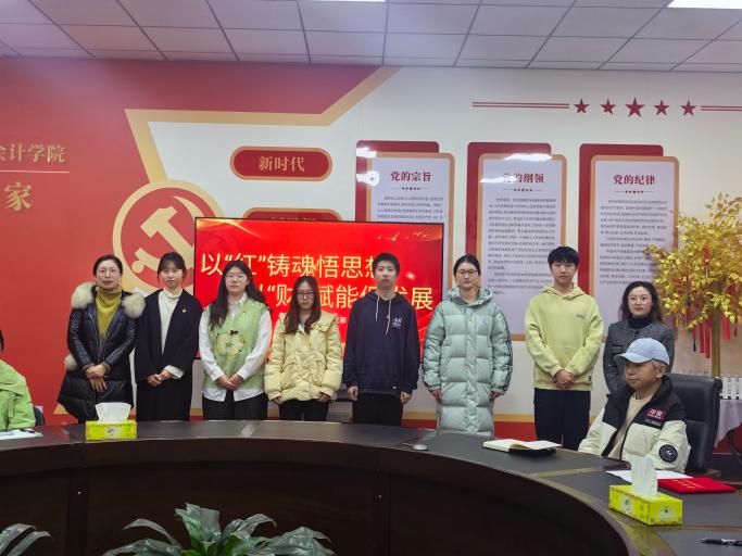 为深入学习贯彻习近平新时代中国特色社会主义思想,巩固拓展主题教育成果,总结年度党建工作成效,凝聚支部发展合力。12月29日中午,会计学院学生党支部于C西506召开“以‘红’铸魂悟思想,以‘财’赋能促发展”年末总结会。参与本次会议的有会计学院党总支书记于璐、会计学院学生党员代表与大三全体发展对象参加会议,本次会议由会计学院学生党支部书记孙含笑主持。