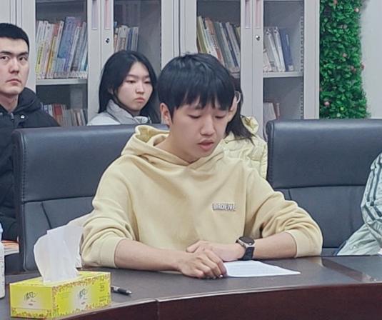 会议交流分享环节中,倪宇寒、孙宇玥、彭博彦三位学生党员围绕“新时代的爱国与担当”主题,结合自身学习、工作与实践经历,畅谈心得体会,三位同学的分享真挚深刻、富有感染力,引发了现场党员的强烈共鸣,进一步凝聚了支部党员爱国奉献、担当作为的思想共识。