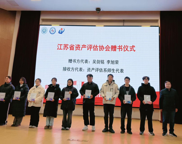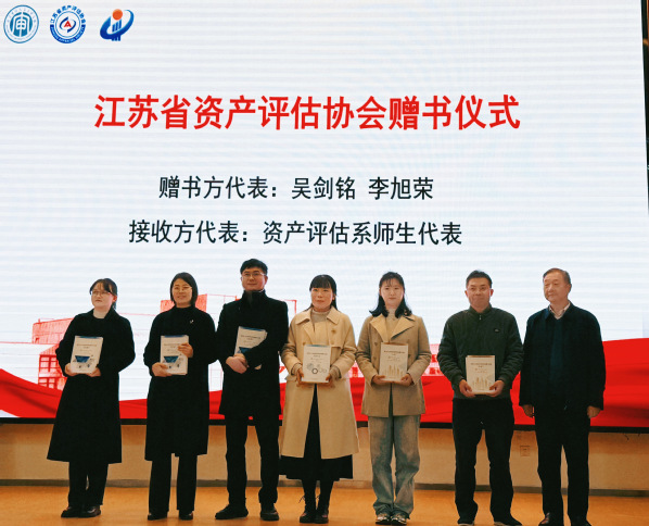 仪式现场,南京审计大学金审学院为一批来自业界的资深专家颁发了校外实践导师聘书,希望进一步借助行业一线力量赋能实践教学;江苏省资产评估协会向资产评估专业师生赠送了专业书籍,为学子们的专业学习提供了宝贵资源,同时寄语学子深耕专业、勇担行业使命。