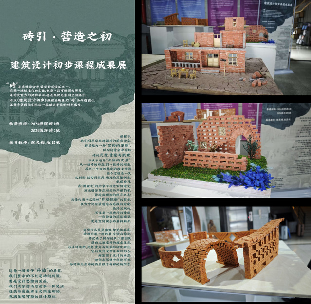 2025年12月31日,艺术设计学院环境设计专业《建筑设计初步》课程作品展在艺术楼1楼大厅呈现。本次《建筑设计初步》课程成果展,以“砖”为命题核心,正是希望同学们从这一基础而丰饶的材料出发,开启对建筑本质的第一次亲密触碰与理性建构。