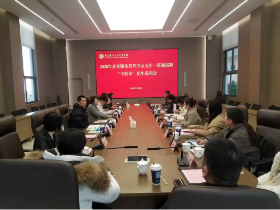 1月9日下午,南京审计大学金审学院举行了养老服务管理专业五年一贯制高职“专转本”招生说明会。会议特邀江苏联合职业技术学院有关分院领导及教师代表莅临交流。南京审计大学金审学院校领导、招生就业处、康养学院相关负责人出席,会议由南京审计大学金审学院党委委员、校长助理孟琪璐主持。