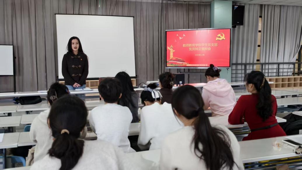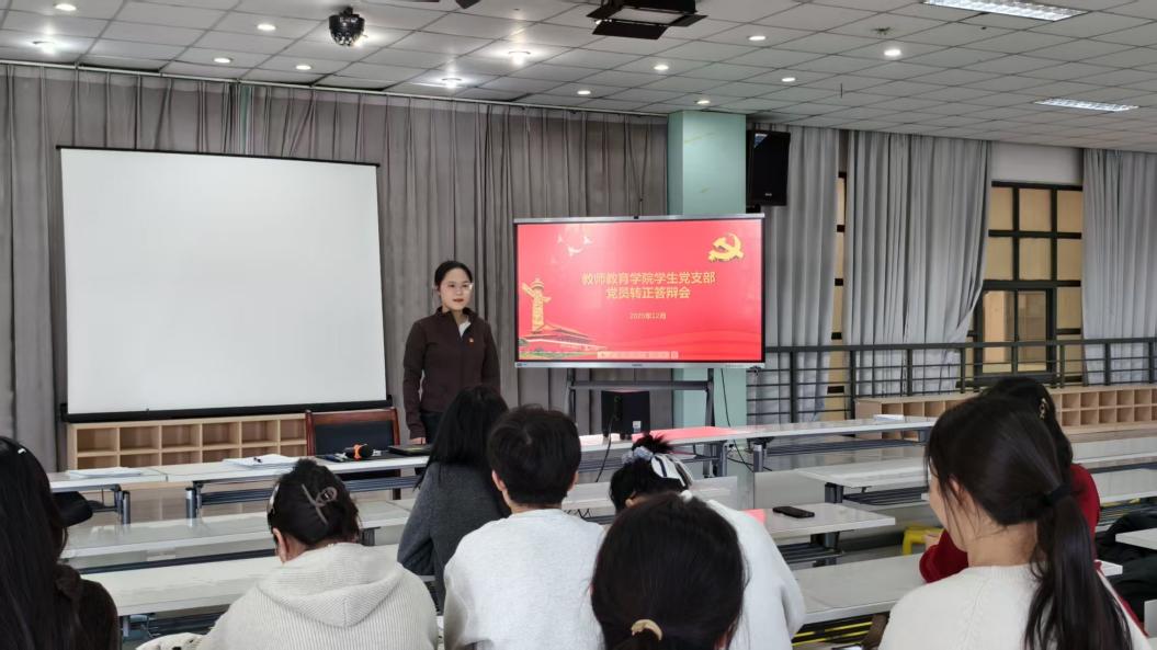 本次转正答辩大会不仅是一次程序性审查,也是一堂浸润式的党性实践教育课,更是学院坚持党建引领、扎实推进立德树人根本任务的一次具体实践。它鲜明体现了党支部坚持政治标准、严格党员发展“入口关”与“质量关”的坚定立场。答辩过程中,预备党员们以实绩说话:或是在专业竞赛中屡获佳绩,或是长期投身支教志愿服务,或是在学院学生工作中勇挑重担……他们用各自出色的表现,生动诠释了“一名党员就是一面旗帜”的深刻内涵,展现了新时代未来教师党员知行合一、锐意进取的精神风貌。