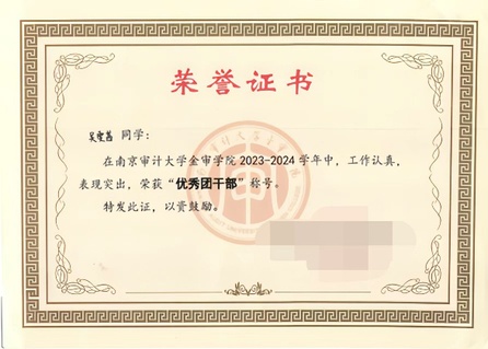 2025年10月,凭借出色的综合能力,她被任命为管理学院分团委副书记,分管学院团学组织部,并且管理学院智慧团建。她牵头制定学院分团委年度工作计划,统筹推进“换届表彰大会”“优秀学生干部交流大会”等大型活动,助力学院团学工作迈上新台阶。期间,她还积极参与思想引领培训,2024年6月通过第43期青年共产主义学校学习并结业,2025年5月完成发展对象培训班学习顺利结业,目前正在参加“青马学生骨干培训工程”,持续提升自身思想觉悟与服务能力。