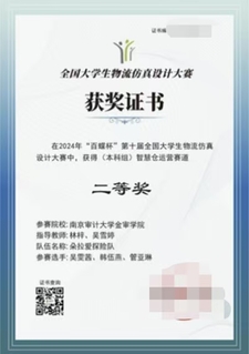 在创新创业竞赛赛场,她同样锐意进取、屡获佳绩。2024年9月,斩获第十八届全国高校商业精英挑战赛文旅与会展创新创业实践竞赛江苏省二等奖;同年10月,带领团队在“百蝶杯”第十届全国大学生物流仿真设计大赛智慧仓赛道中脱颖而出,获国赛二等奖。2025年,她的竞赛之路更是硕果累累:5月,获第六届全国供应链大赛本科组省赛二等奖;6月,带领团队拿下2025iCAN大学生创新创业大赛“鼎航杯”数字化创业经营模拟挑战赛省赛一等奖;10月,在该赛事国赛中再创佳绩,获国赛三等奖;同期,她参与的作品入选第八届全国大学生网络文化节-光影趣青春推荐名单,获江苏省高校网络政治工作中心认可,用一项项沉甸甸的荣誉证明了自己的综合实力。