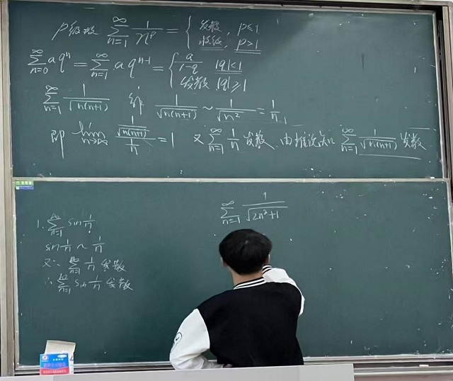 他身兼多项职务,全身心投入学生工作,达成服务水平与个人能力的双提升。担任生活委员期间,认真负责宿舍安全检查,帮助老师维持同学生活秩序,迅速回应同学们的生活需求,为集体生活筑牢保障之墙;作为学习部成员和数学社社长,他协助策划“辩论赛”“金融文化节”,数学竞赛等特色活动,营造社团浓厚的学术氛围,搭建学业互助的桥梁,推动年级形成良好学风;担任教务处助理团组长时,他协调团队高效完成教务通知传达、协助教师等工作,确保教学事务平稳推进。