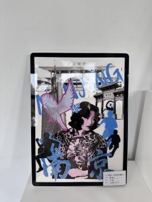 拼贴万象。一幅幅充满创意的拼贴作品早已跃然眼前,成为布展现场最动人的风景。从《南京南站》里复古旗袍女子与现代都市剪影的交织,到《南京印象》中黄色出租车、六朝石刻与紫峰大厦的碰撞;从《南京记忆》里明城墙砖、中山陵雪松与红色旗帜的呼应,到《苏·韵》中苏州园林、虎丘塔与东方之门的融合——每一幅作品都以拼贴为媒介,将城市地标、历史印记、市井烟火与当代生活巧妙缝合,用碎片化的视觉语言,诉说着同学们对不同城市的独特观察与情感联结。 这些作品里,有老门东的飞檐翘角,有鸡鸣寺的白鸽翩跹,有平江路的粉墙黛瓦,也有恐龙园的童趣剪影。它们既是对城市文化的致敬,也是青年一代艺术表达的鲜活注脚,让观众在方寸之间,便能触摸到不同城市的肌理与温度。