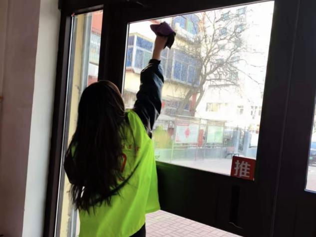 在社区服务现场,管理学院学子主动担当,积极参与环境整治工作。春节前夕,朱佳慧同学响应社区“迎新春大扫除”号召,专注于门窗擦拭、卫生死角清理等工作,不放过任何一处污渍,用细致的劳动让社区公共区域焕然一新,为居民营造干净整洁的过节环境。