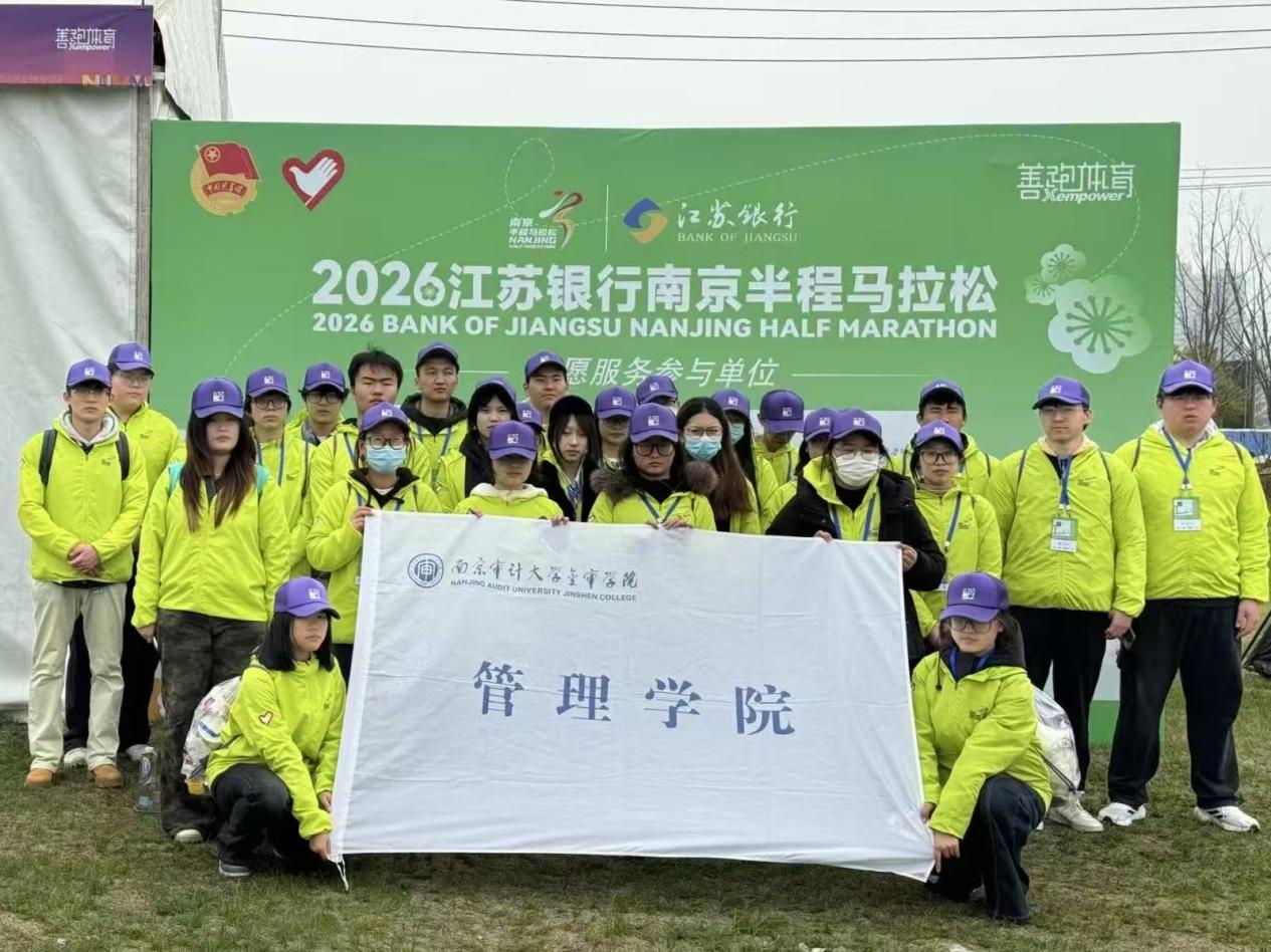 为践行志愿服务精神,助力城市体育赛事发展,南京审计大学金审学院2026年3月组织青年志愿者,参与2026江苏银行南京半程马拉松赛事服务工作,管理学院学子以饱满热情与专业态度圆满完成各项保障任务。