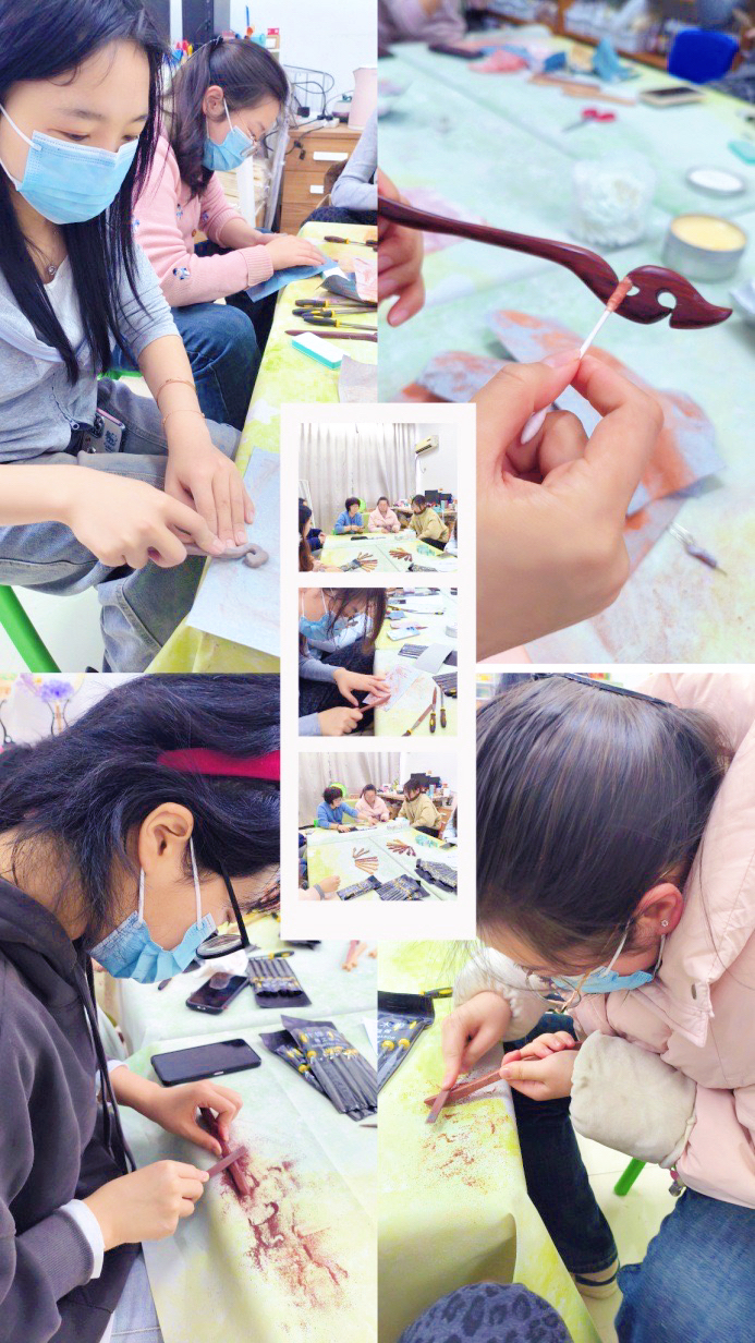 当木蜡油轻轻涂抹,原本暗淡的木坯泛起温润光泽,一支支独一无二的发簪在手中诞生。这一刻,发簪不仅是手作的成果,更成为成长的见证。黄老师表示:“美育不仅是艺术技能的传授,更是情感的表达与人格的塑造。在快节奏的现代生活中,让学生静下心来亲手完成一件作品,本身就是一种心灵的洗礼。我们希望通过这样的活动,让传统文化在指尖‘活’起来,让美育真正浸润学生的心灵,在匠心打磨中涵养从容品格。”